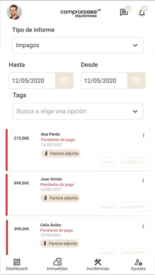 -Ver y descargar Reportes de rentabilidad, declaración de la renta, liquidaciones, impagos…