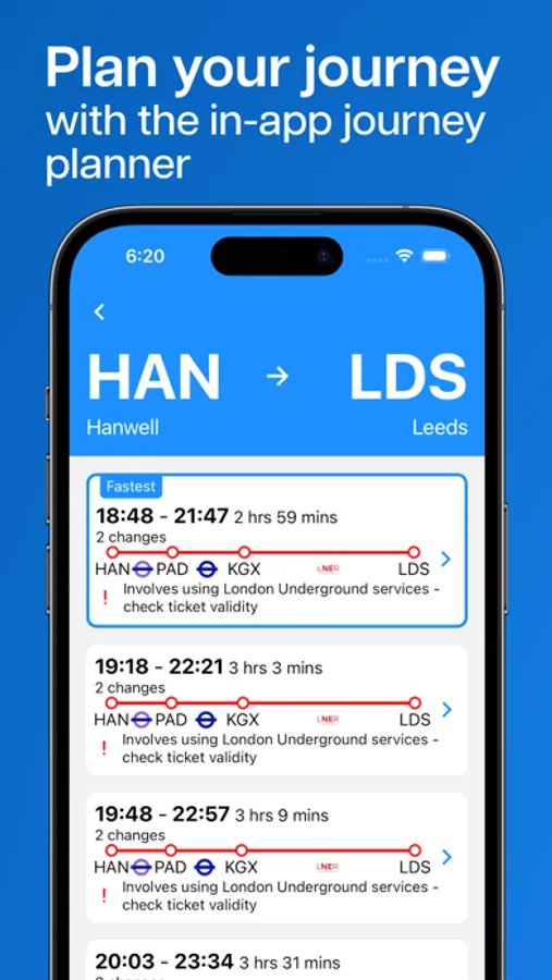 Planning journeys has been made very easy in the app. Enter your origin and destination stations and the app will return to you the fastest possible route.