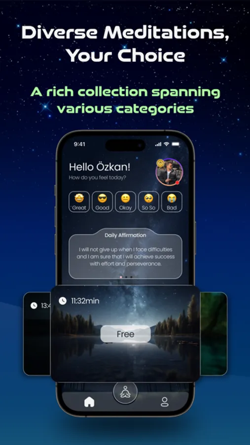 + Personalized Meditation: Our AI-powered system creates meditations that align with your unique preferences and goals