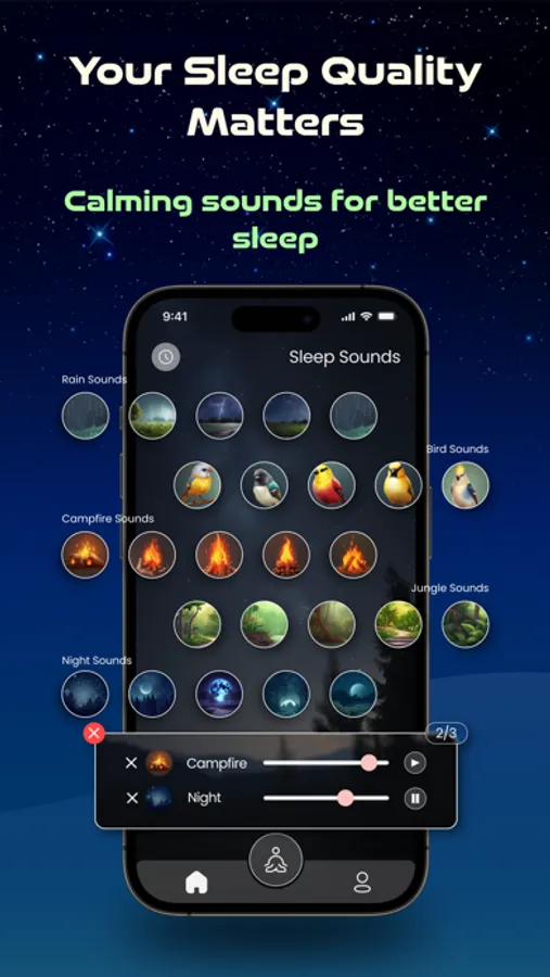 + Sleep Sounds: Drift into a restful slumber with our carefully selected sleep sounds. From gentle raindrops to serene ocean waves, we offer a range of soothing audio options to create a peaceful ambiance for a good night's sleep