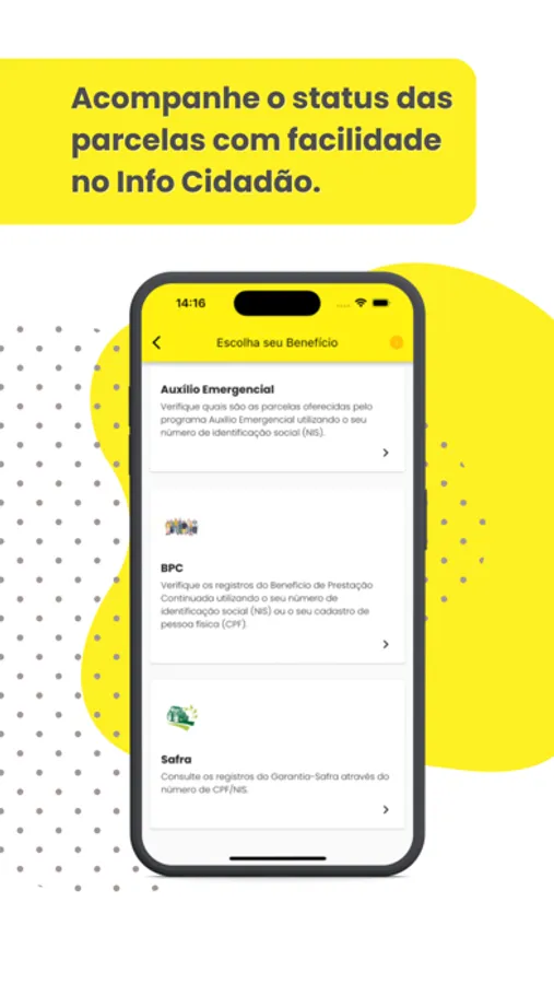 O Info Cidadão é uma iniciativa independente, desenvolvida para oferecer uma ferramenta simples e prática para consulta das parcelas do Bolsa Família, com total conformidade com as políticas de privacidade e segurança. Além disso, o aplicativo pode ser útil para usuários que acessam benefícios como FGTS, Auxílio Brasil, Auxílio Emergencial e abono salarial PIS, garantindo maior controle e transparência sobre o recebimento desses benefícios. Com o Info Cidadão, os usuários podem acompanhar o status das parcelas de forma rápida e fácil, em qualquer lugar e a qualquer hora.