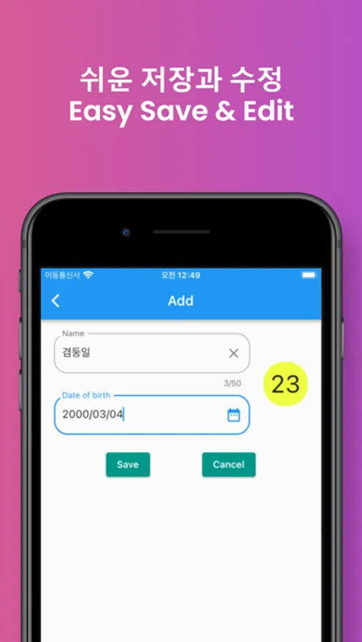 단순한 UI를 통하여 내가 관리하고 싶은 여러명의 만나이를 계산하고 저장할 수 있습니다.