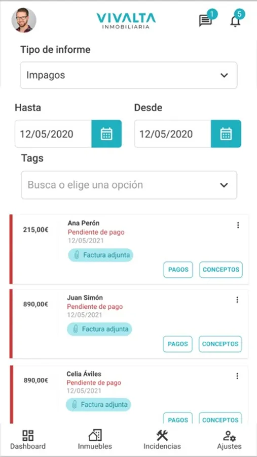-Ver y descargar Reportes de rentabilidad, declaración de la renta, liquidaciones, impagos…