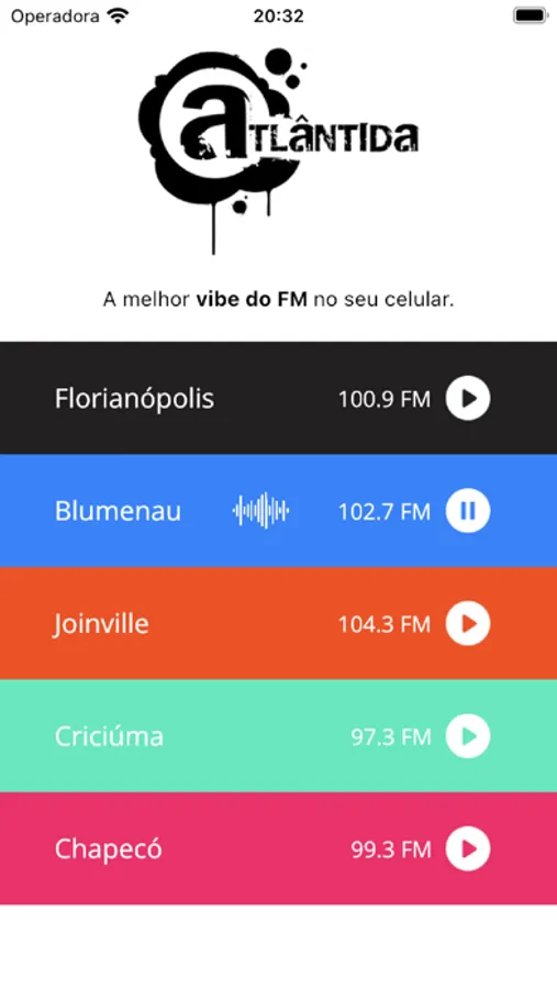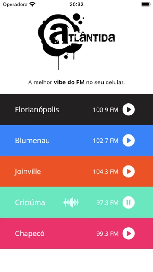 A melhor vibe do FM no seu celular.