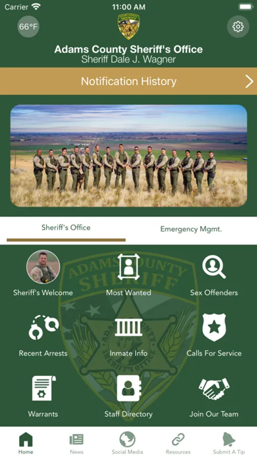 The Adams County Sheriff’s Office (WA) mobile application is an interactive app developed to help improve communication with area residents. The Adams County Sheriff App allows residents to connect with the Adams County Sheriff’s Office by reporting crimes, submitting tips, and other interactive features, as well as providing the community the latest public safety news and information.