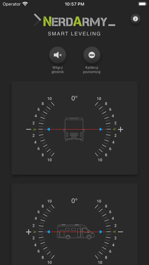 Nerd Army Smart Platform LevelApp to aplikacja do obsługi poziomicy elektronicznej dostarczanej przez Nerd Army, której zadaniem jest ułatwienie wypoziomowania pojazdu rekreacyjnego w miejscu postoju (w dwóch płaszczyznach). Aplikacja posiada wizualizację przechylenia w osi wzdłużnej i poprzecznej pojazdu. Aby działać musi być podpięta do elektronicznej poziomicy produkowanej przez Nerd Army poprzez sieć WiFi, która pojawia się po włączeniu zewnętrznego urządzenia. Aplikacja umożliwia również kalibrację tego urządzenia oraz włączanie / wyłączanie dźwięku poziomowania.
