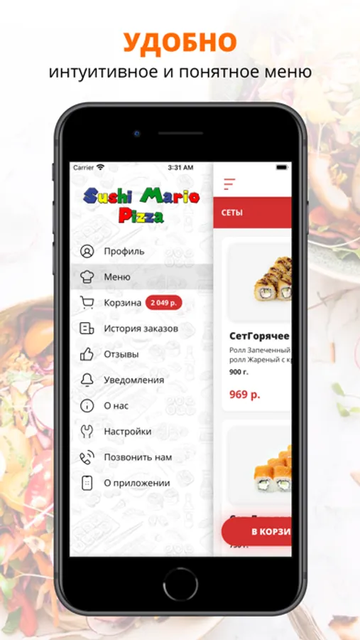 Воспользуйтесь удобным приложением для заказа еды «Sushi Mario Pizza».