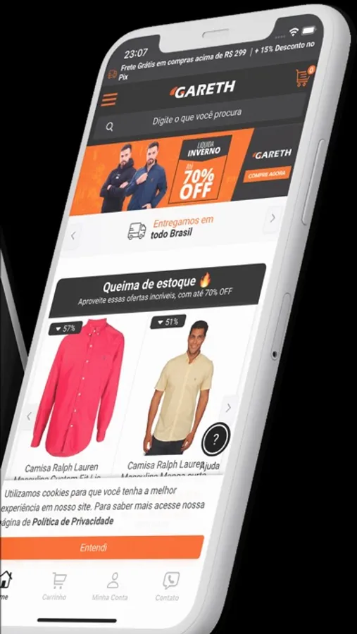 Obtenha descontos incrívies no APP da loja Gareth Brasil, um dos maiores outlet de moda masculina do Brasil.