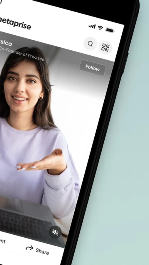 Look for the QR-Code icon in the upper right corner to share your profile with valuable connections to make ongoing interactions easier. You display your QR code in person or share your personal link via a variety of apps on your iPhone. Your experience will continuously improve as you invite more connections on to Metaprise.
