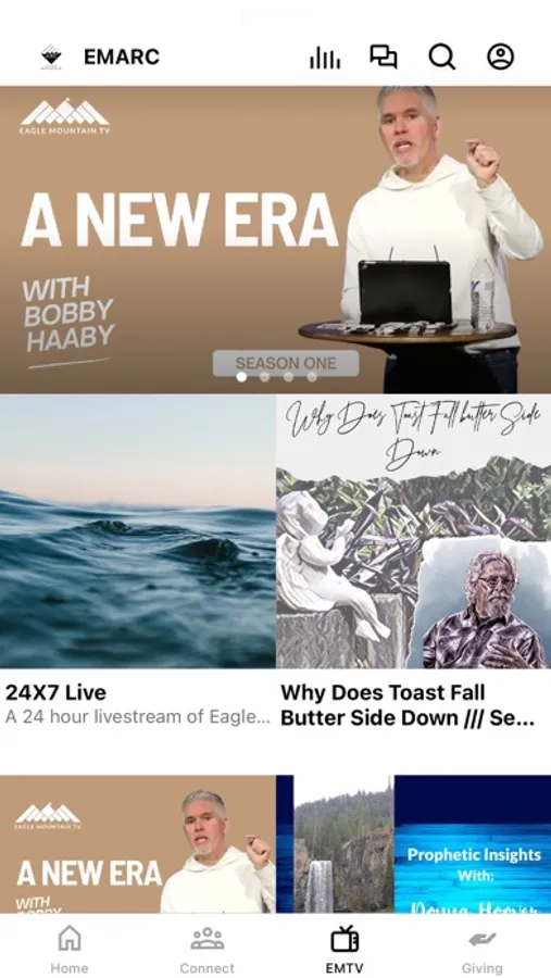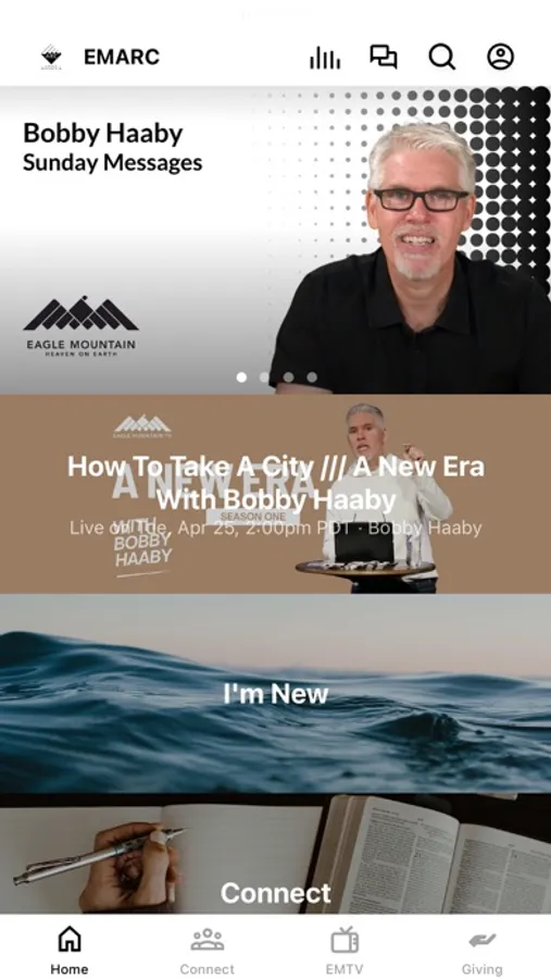 Welcome to the official Eagle Mountain app. Listen to recent messages, stay connected, weekly new content, and watch free amazing content on Eaglemountain.tv
