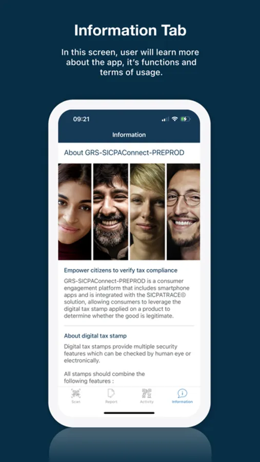 GRS-Sicpa Connect is a platform, allowing anybody to determine the legitimacy of their purchase and inform the government of suspicious ones by the use of their smartphone. Integrated with the SICPA® solution, GRS-Sicpa Connect allows government to engage their citizens in the fight against illicit trade.