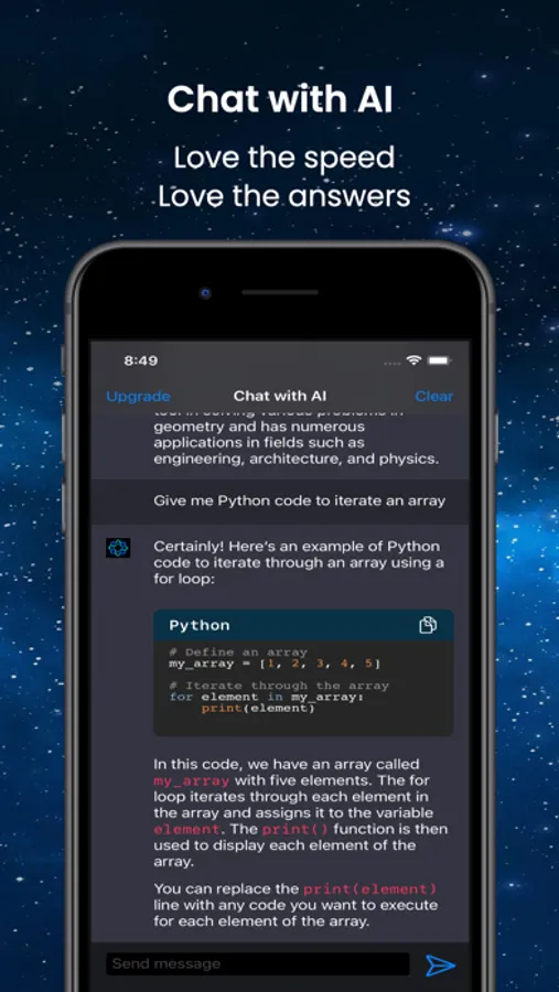 Chat with AI for iPhone: Explore a world where AI empowers you to be more efficient, creative, and connected! Download today our ChatGPT Powered App.