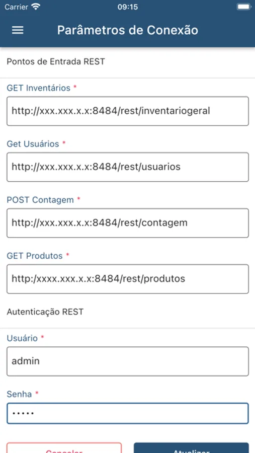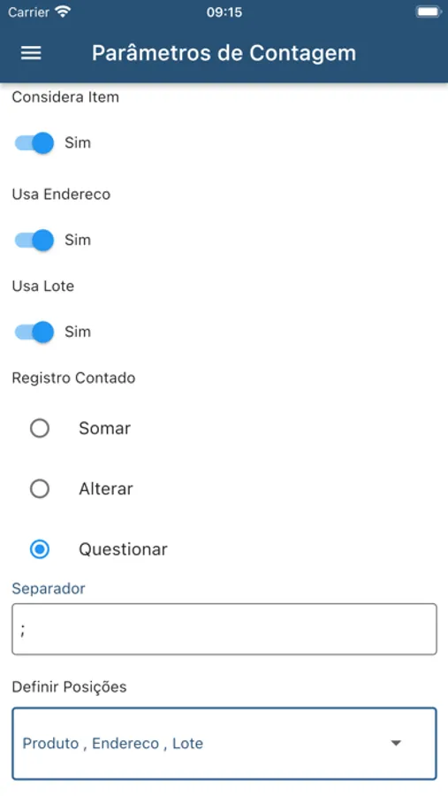 Aplicativo para auxílio na contagem do inventário, na qual o usuário terá a possibilidade de pesquisar o item pelo código, descrição ou através da leitura do código de barras do produto. Após a localização do item, o usuário deverá informar a quantidade contada para atualização do inventário.