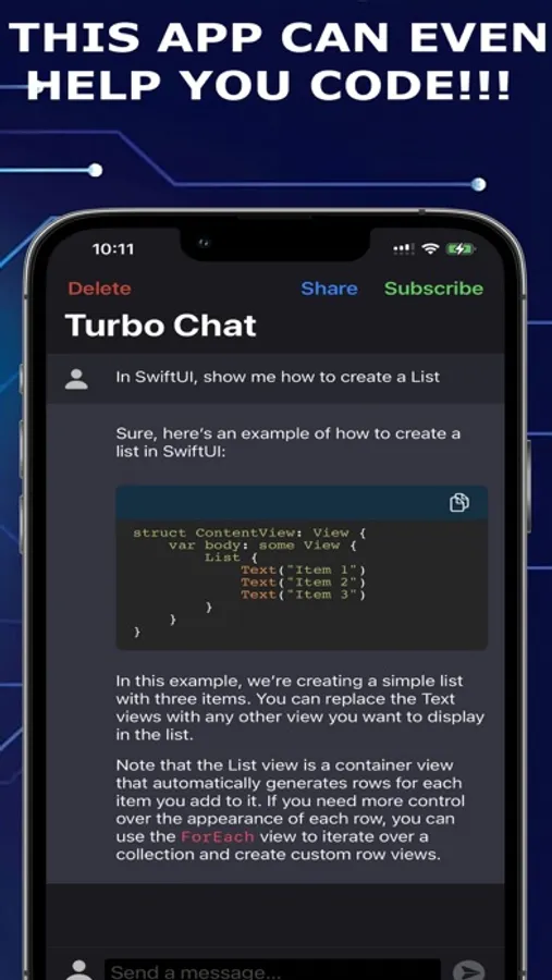 Push the boundaries of instant communication with Turbo Chat, your advanced AI-powered chatbot!!! Our innovative technology enables lightning fast responses to your inquiries, allowing you to have conversations that feel more natural and lifelike than ever before. Get instantaneous answers and enjoy a seamless human-like chatbot experience - now you can connect and chat like never before! Try Turbo Chat out now and experience the future of communication!