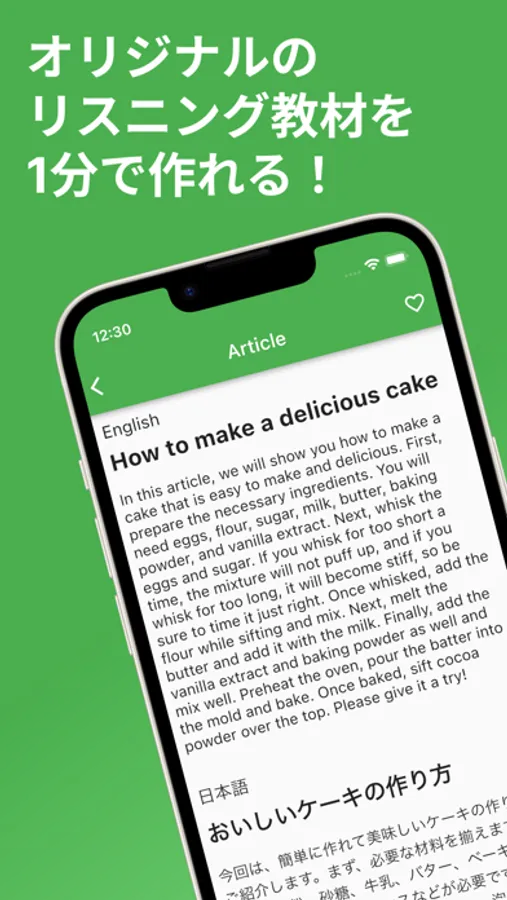 ユーザーが入力したキーワードに基づいて、自動的にオリジナルの英語リスニング教材が生成されます!