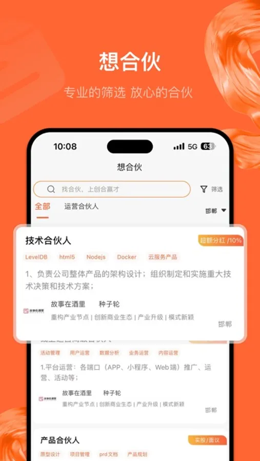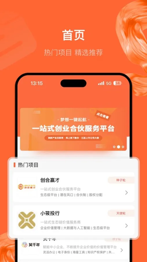 1. 10万+热门项目,平台精选推荐,实现合伙人才和项目方的优质撮合。