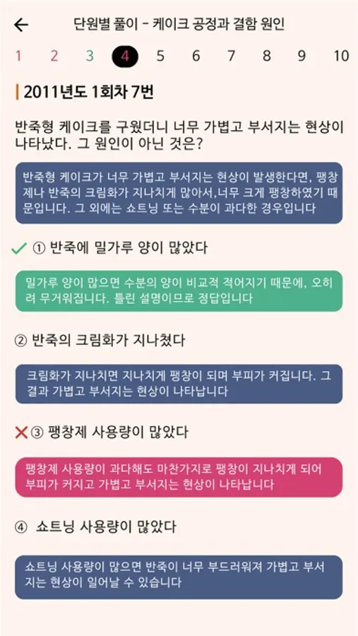 1. 역대 기출 문제와 해설 제과기능사 필기 시험 7개년문제를 CBT방식으로 모두 풀어볼 수 있습니다. 문제를 풀면 즉시 정답과 해설을 확인할 수 있습니다!