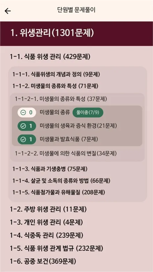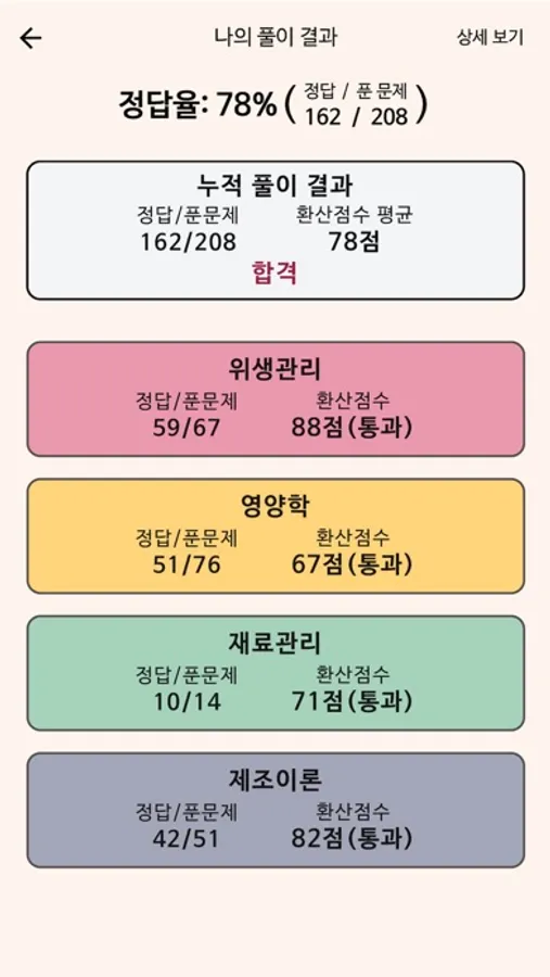 2. 주제별 문제와 요약노트 모든 문제를 과목(위생관리, 영양학, 재료과학, 제조이론)별로, 그리고 주제별로 분류하였습니다. 또한 각 주제별로 핵심 암기 포인트들을 모아 정리한 요약노트를 통해 효율적인 학습과 암기가 가능하도록 준비했습니다.