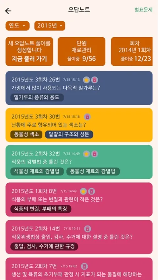 3. 오답노트와 메모장 틀린 문제는 따로 모아서 반복해서 풀어볼 수 있도록 오답노트 풀이 기능을 제공합니다. 중요한 문제는 별표 후 나만의 암기 메모를 추가해서 관리할 수 있습니다.