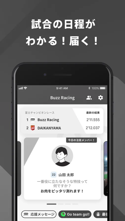 アプリを通じて、チームとの距離がぐっと近くなる。仲間が増える。チームをもっと好きになる!