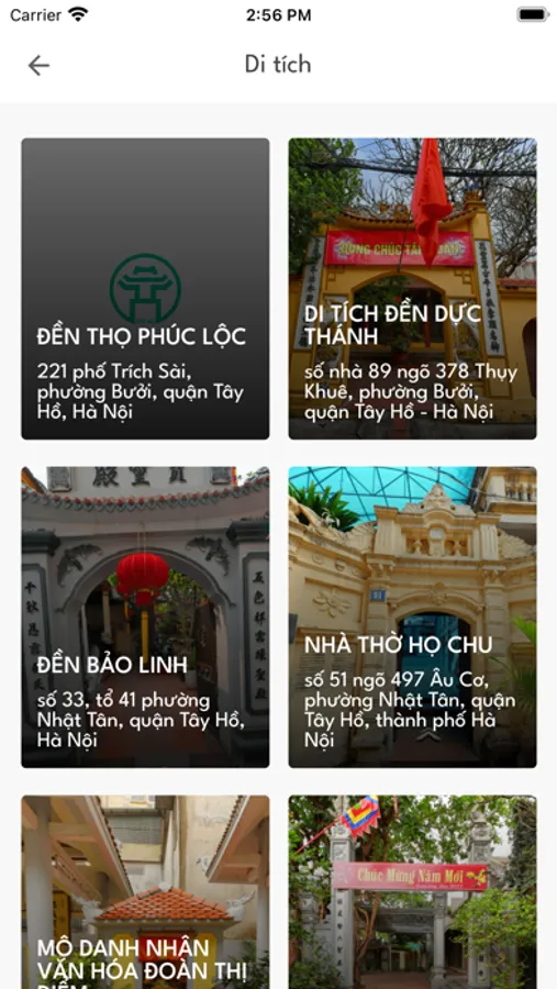- Tìm kiếm các địa điểm du lịch, dịch vụ, thương mại của quận Tây Hồ hiển thị dưới dạng danh sách.