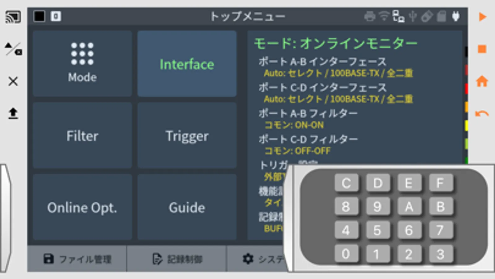 また、画面下部の両端のドロワーを引き出すことで数字キー、カーソルキー及びEnterキーが出現します。