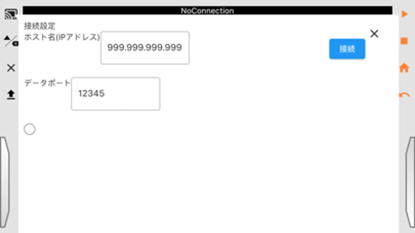 ポップアップした入力画面に、リモート接続するアナライザーのIPアドレス、ポート番号を入力し、接続を押します。