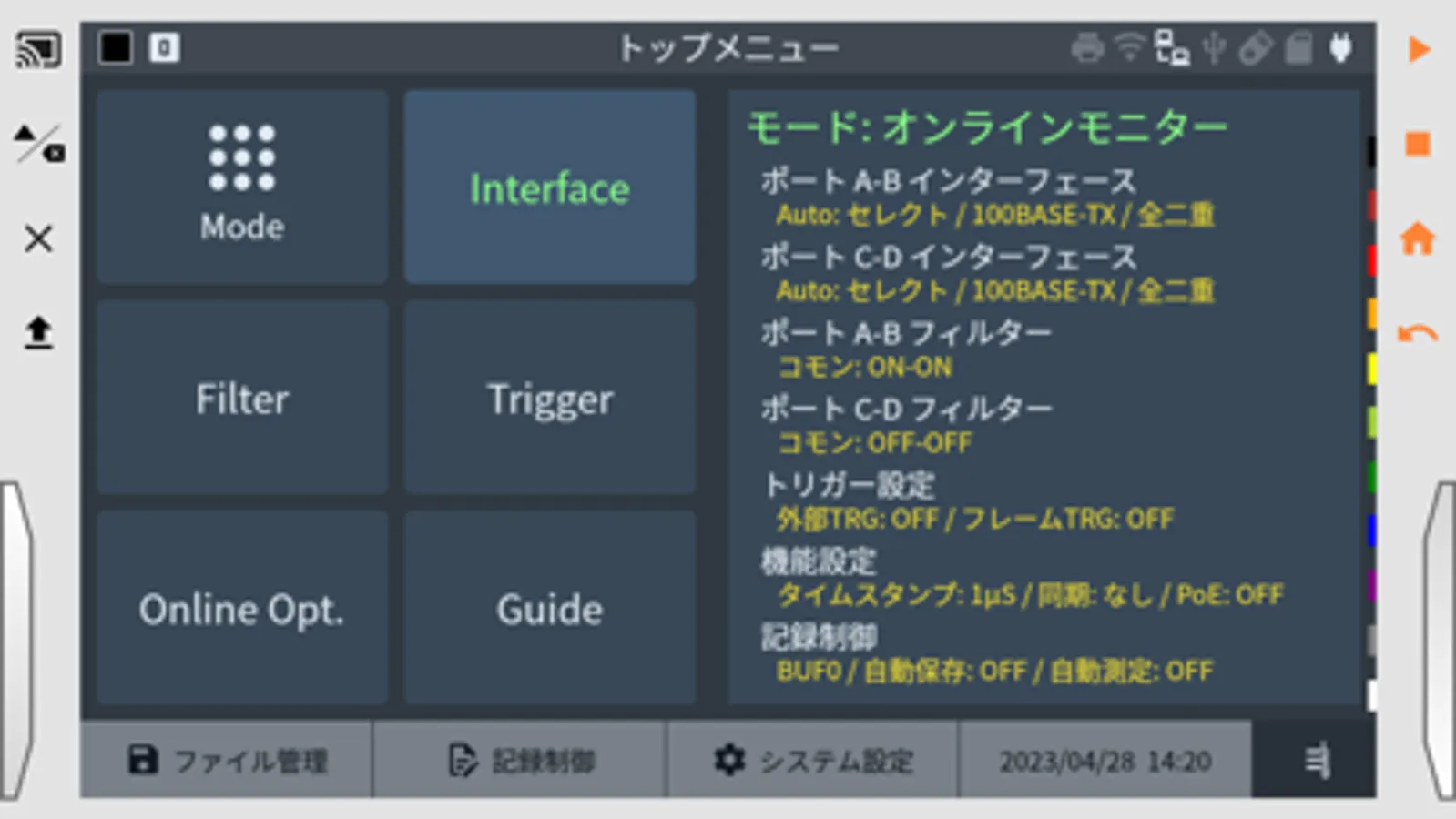 右サイドは上から、RUN、STOP、MENU、ESCキーに対応しています。