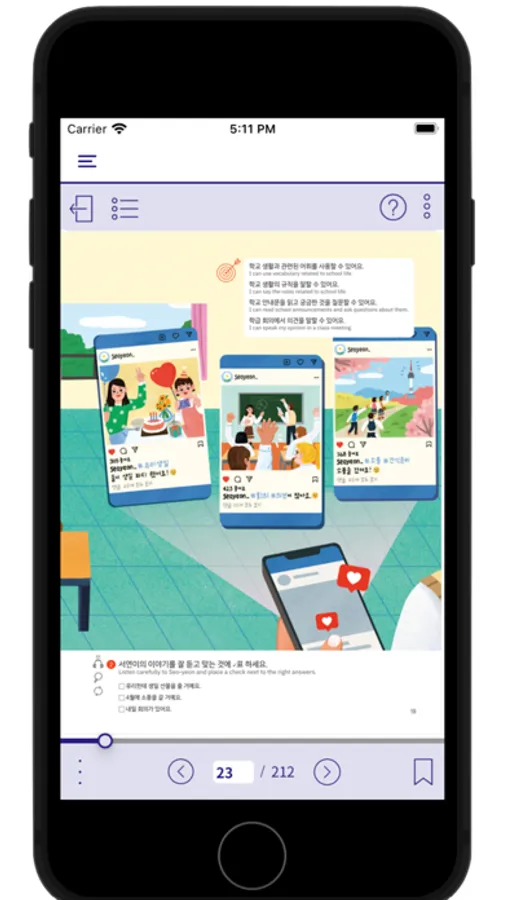 - 학습자가 원하는 책갈피 선택, 메모 등의 기능으로 나만의 전자책 만들기