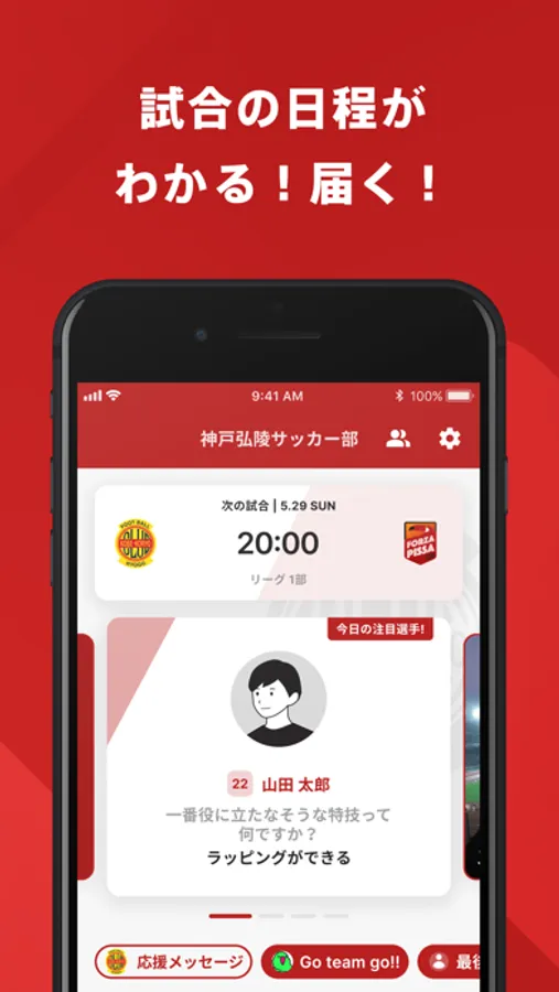 アプリを通じて、チームとの距離がぐっと近くなる。仲間が増える。チームをもっと好きになる!