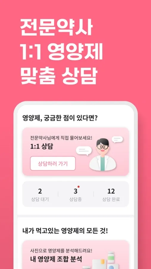 내가 먹는 영양제의 함량, 구성, 여러 영양제 간 조합까지 분석해서 종합 상담해드려요.