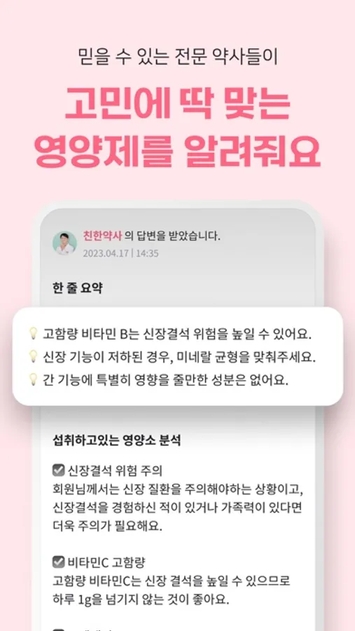 전문 약사님에게 물어보세요. 나의 건강 상태, 복용 중인 약과 영양제를 고려해,