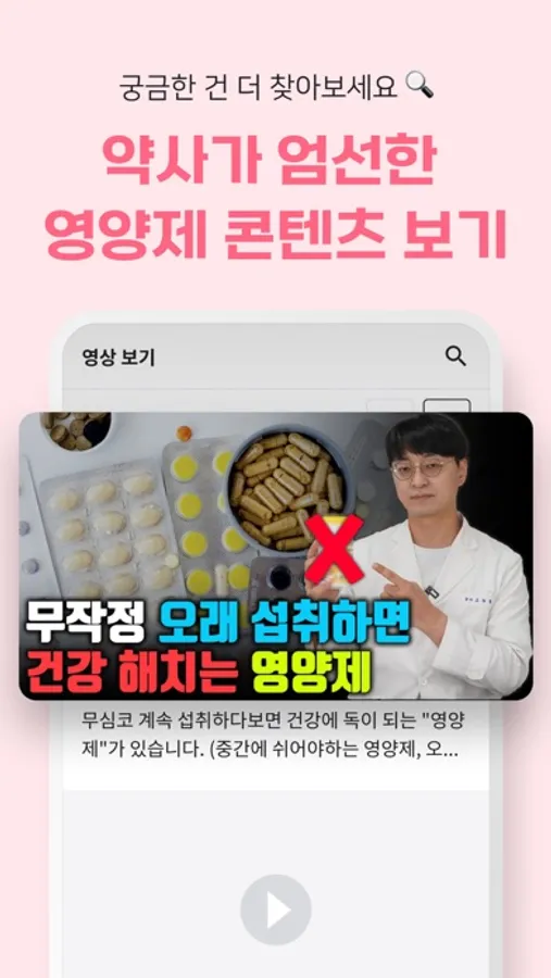 약사님들이 직접 선정한 건강, 영양제 꿀팁 영상을 볼 수 있어요.