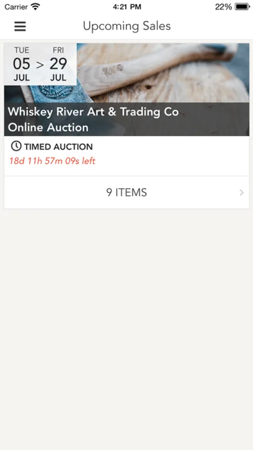 With the Whiskey River Auction app, you can preview, watch and bid in our auctions from your mobile / tablet device. Participate in our sales while on-the-go and gain access to our following features: