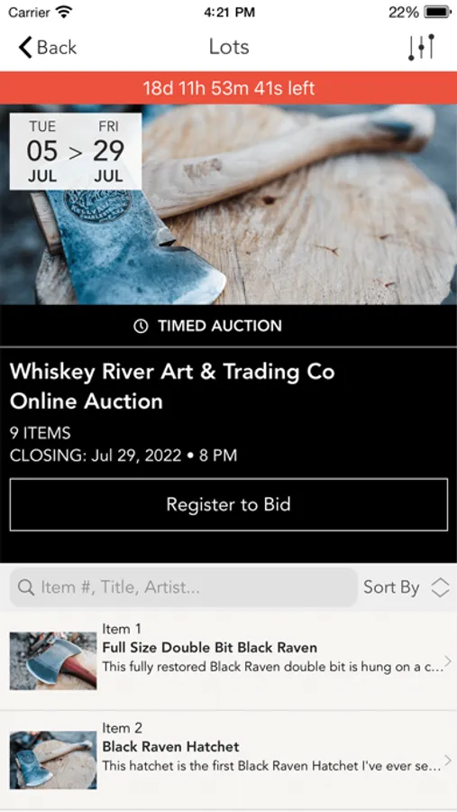 Whiskey River Auctions app allows you to bid on a large array of products ranging from custom axes to antiques to hand painted pieces of art. Whiskey River Art & Trading Co was created to help artists, craftsman, and makers sell their creations and our auction platform is our way of doing that more effectively. With the Whiskey Rivers Auctions platform, you can expect to see projects from individual makers and one of a kind collaborations between multiple makers. Download the app today and be sure to not miss out on some amazing deals on some beautiful pieces of useable art.