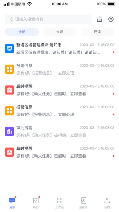 消息管理:通过消息及审批中心,实时跟踪工单的执行进程