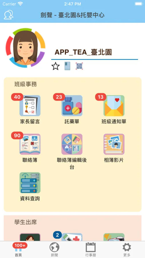 10. 線上請假 : 家長提交請假申請,老師可查詢統計請假人數和名單,並與教師點名介面連結。