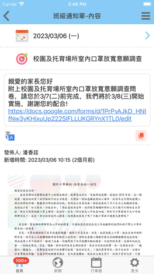 3. 聯絡簿:班級教師編輯課堂內容和作業給家長,家長可回覆與老師溝通交流。