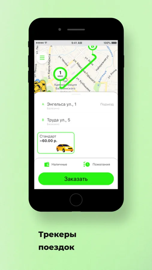 Откройте приложение, укажите адрес и закажите такси, нажав на одну кнопку.