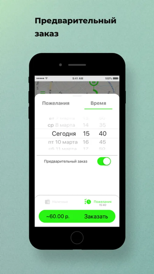Нужен автомобиль к определенным времени и дате? Закажите его заранее через приложение, и в назначенное время такси будет ждать вас у подъезда.