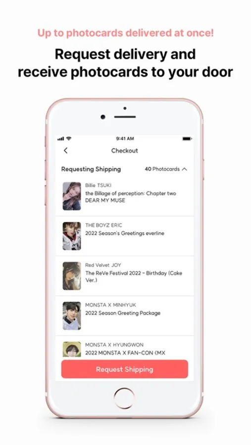 Purchase your photocards in your digital collect book and request shipping whenever you want.