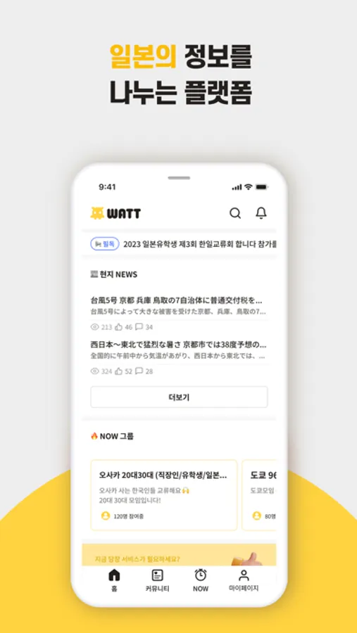 와트는 일본 거주자, 직장인, 유학생, 워홀러 혹은 여행자의 시점으로 맞춤 정보형 커뮤니티 앱이에요.
