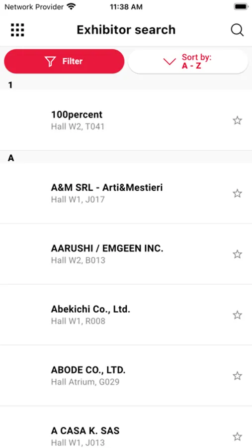 Exhibitor search: search for companies and products, filter and sort functions, and add photos and notes to an exhibitor available