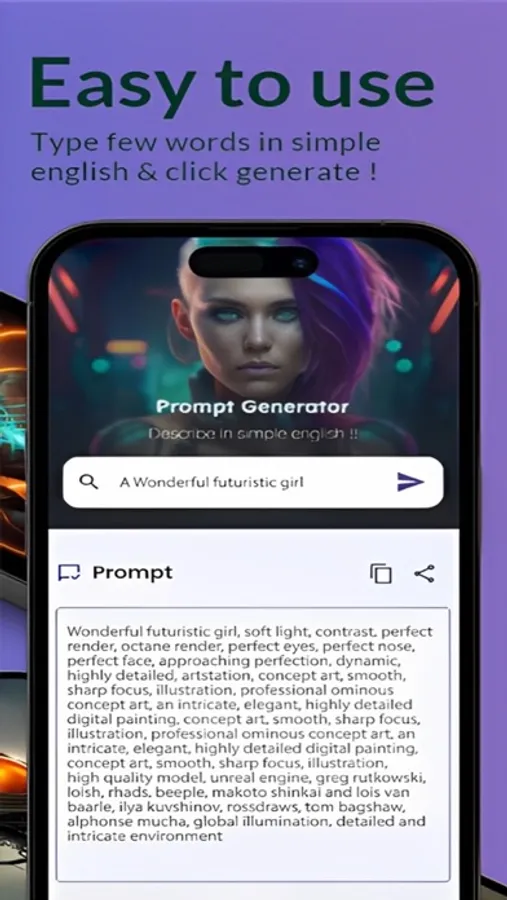 • Our cutting-edge trained Ai language model, will generate for you the perfect prompt in seconds.