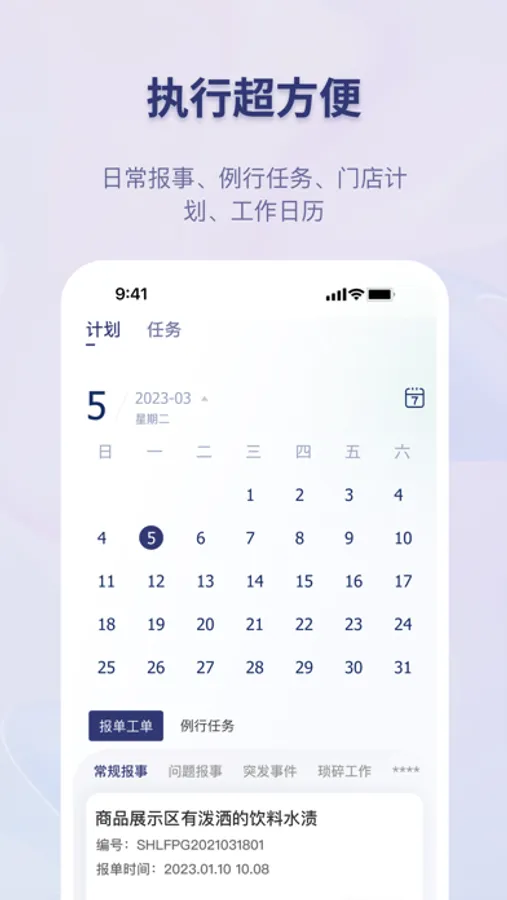 4)待办&日历:日常报事、例行任务、门店计划、工作日历……执行超方便。
