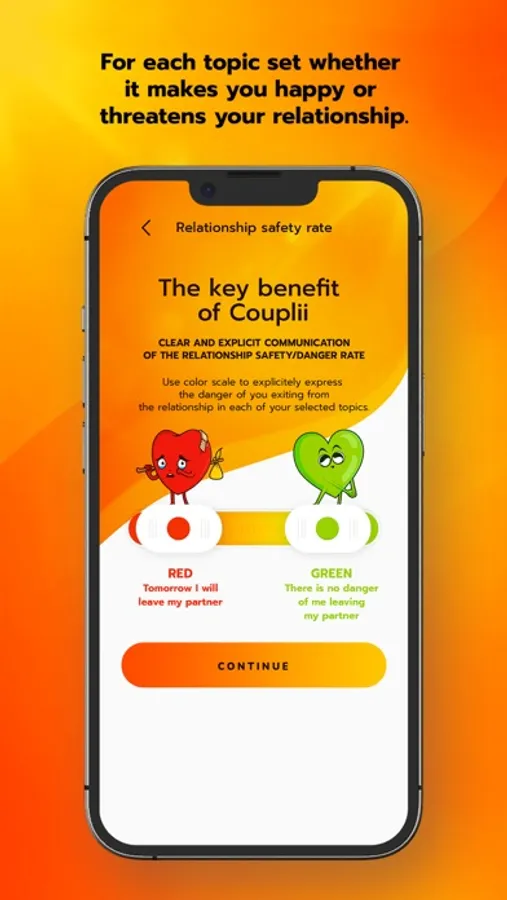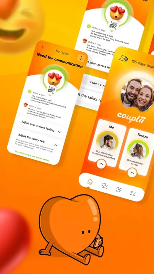 Couplii is suitable for anyone who cares about their relationship, wants to nurture it and doesn't want to lose it. It will allow you to communicate and express your feelings so that your partner understands them exactly as you mean them. If Couplii detects a problem that might arise in the future, or has already arisen, it will clearly and understandably tell you and your partner where the problem is, how it threatens your relationship and offer a solution. All this in real time - 24/7.