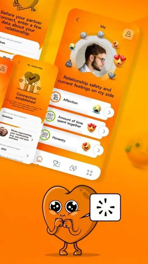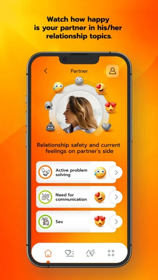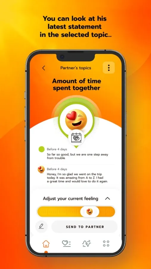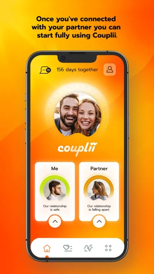 Your and your partner's expression of your current mood and relationship security level are clearly displayed graphically in Couplii. You don't have to look anywhere. You can see everything right away.
