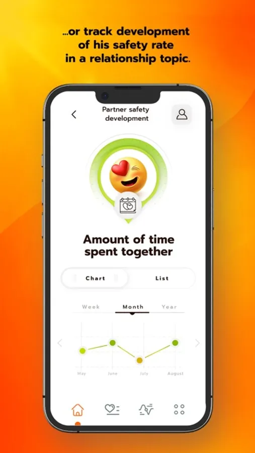 ◾ Once in a while it is good to review your long-term satisfaction in your chosen topics, the so-called relationship security level. It's great that sometimes your partner cooks, you send him happy smiley faces for that. But then there are other little things, like messes, dirty laundry on the floor, hair in the bathtub... and in the long run, it's pretty annoying. Communicate this to your partner by adjusting your relationship safety level. The greener, the happier you are.