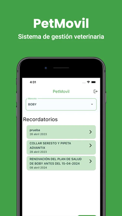 Se sincronizan los datos que tienen la clínicas veterinarias en el CRM PETCLINIC con la app y notifica automáticamente las próximas citas con el veterinario, cuando debe vacunar y desparasitar a su mascota.