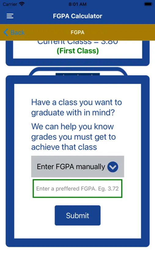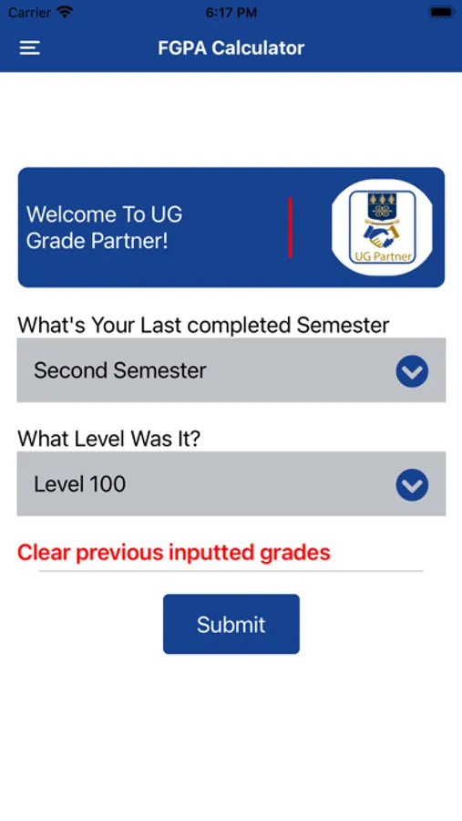 UG Partner (UG FGPA Calculator) is an app that helps University of Ghana students to calculate their FGPA/Final Grade Point Average (GPA to graduate with) and also predict grades they must get in their upcoming semesters in order to graduate with their desired class. The app has the extra feature of providing students with past questions. You can also access examination timetables from the app. This is the only app you will ever need to graduate with your desired class from University of Ghana.